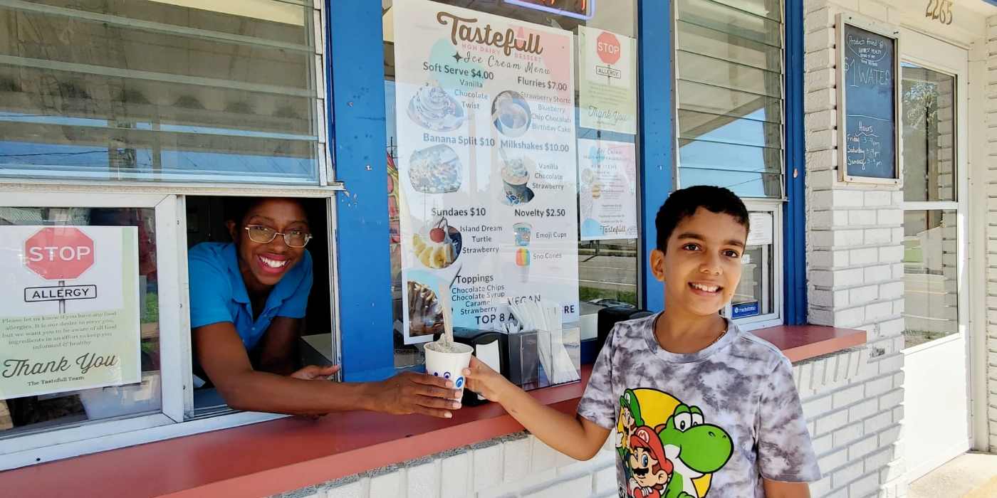 Absolutely delicious, creamy soft serve & hard scoop ice cream! Small shop, and small menu, but enough for everyone to find something they like. Good size portions. Outside seating only. Entire menu is dairy free, gluten free, nut free, hfcs free & no artificial colors or sweeteners. Good prices, too. Our family of 4 spent less than $35. Will definitely be back!